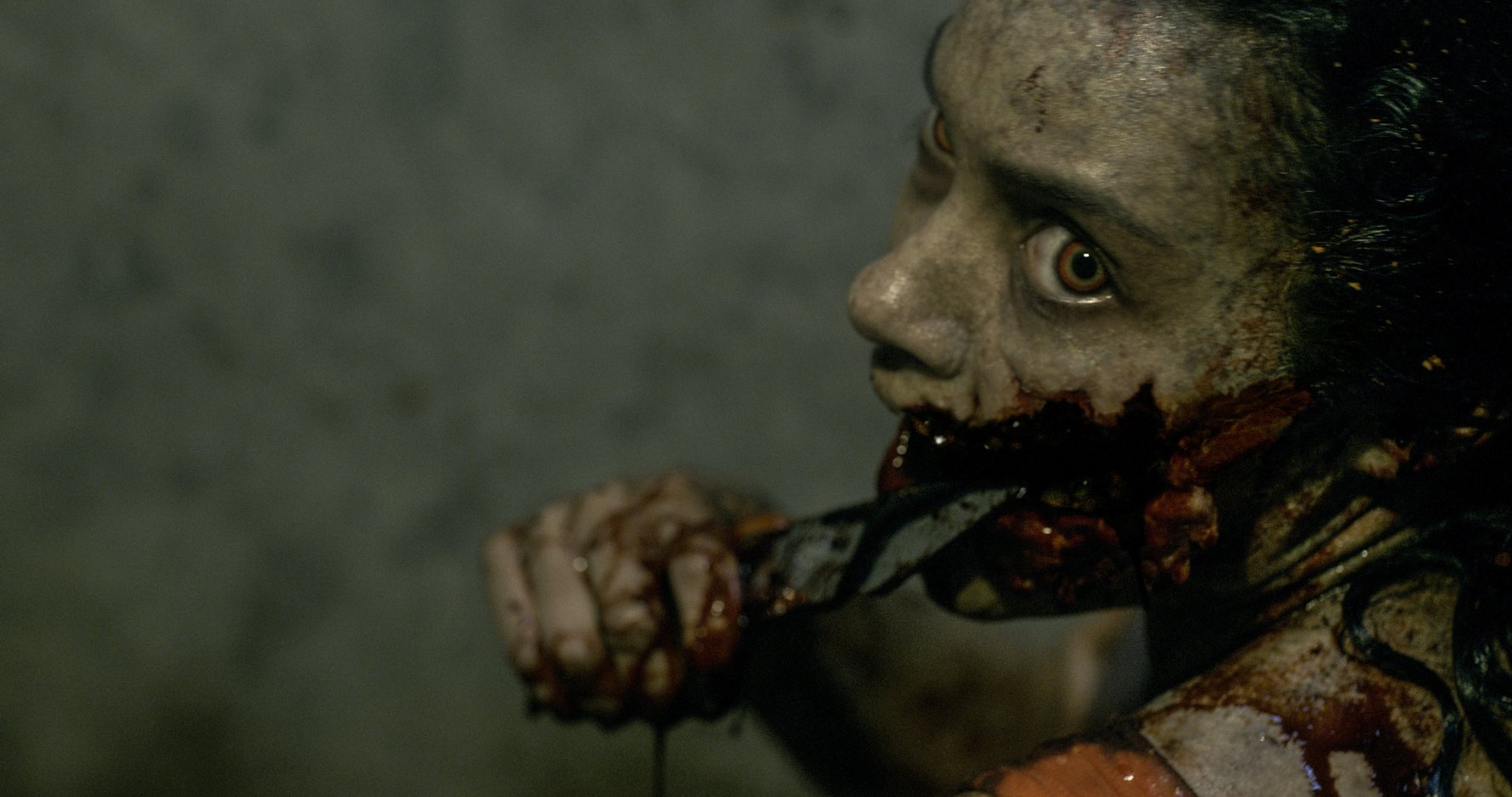 Got a little sidetracked. Back to the book. The book it a glorified instruction manual on how to make one become possessed, that a total of 5 (convenient) need to be killed, and then the “Abomination” will appear. There really isn’t room for anything else beyond that, eliminating much semblance of mystery there is. There’s no “evil” force, there’s just some ghost that wants to manifest itself physically. And when the Abomination does appear, this being that had at least some amount of buildup to it, what do we get? Just something that can be disposed of as easily as a typical deadite from the original films. All I could think was, “That’s it? This is as threatening as this thing gets? We just get some bloody rain to announce the arrival of a zombie that can be killed just like that?” Underwhelming. The only thing more bullshit than that is the drug-addict sister coming back to life completely normal with no scars even after slicing her tongue. That would’ve at least made the 3rd act more interesting, even if only because it would make me laugh my ass off, at seeing her trying to talk for the rest of the film with a fucked up tongue. But that doesn’t even take into account the fucking 2nd and 3rd degree burns she got. But nope, she’s just all fine and dandy after being buried six inches deep. Did I mention it was too fucking easy for these characters to deal with this shit?