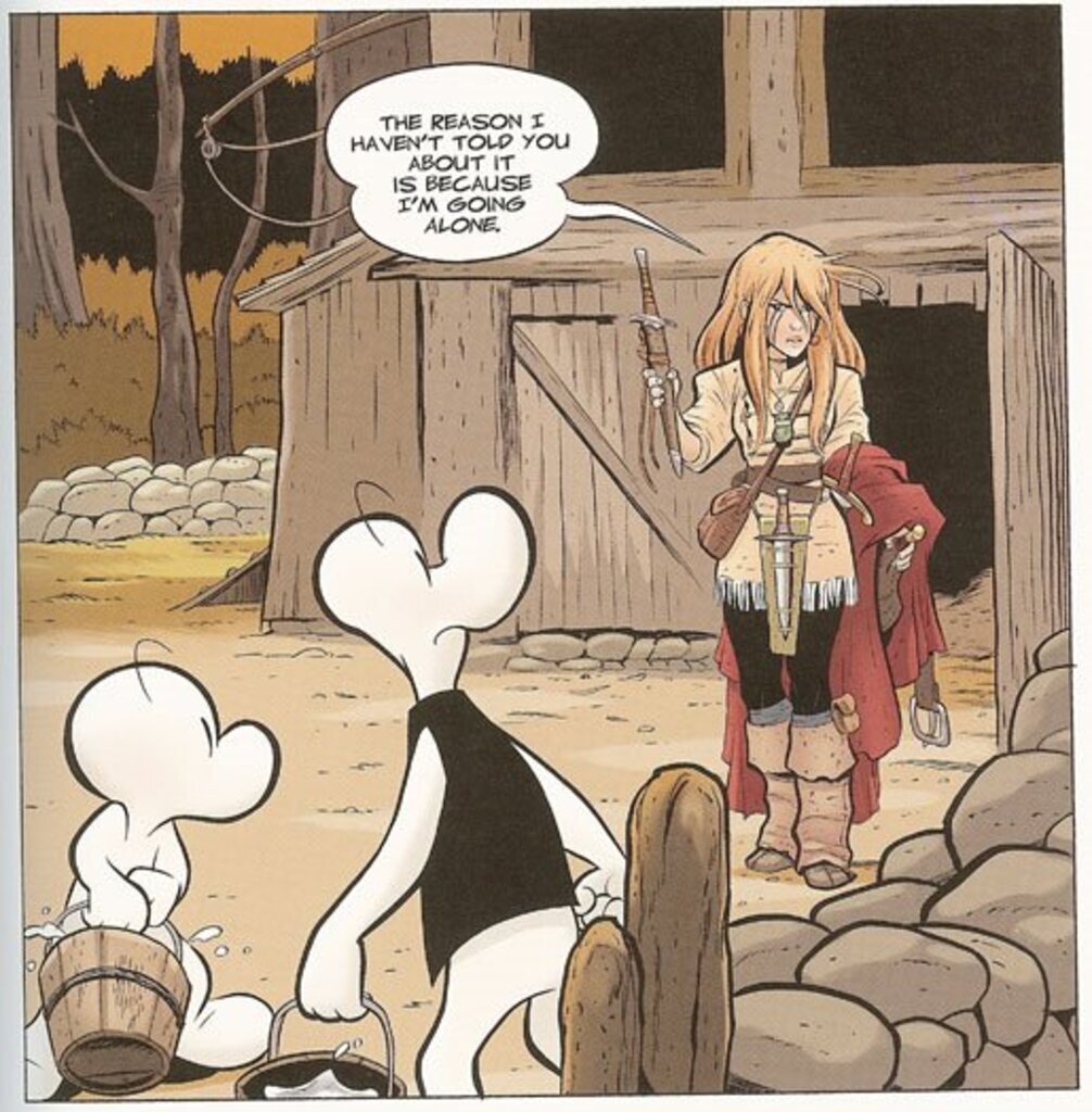 But then comes the bad stuff. There’s a character I absolutely despise in this comic. The granny. The tough-as-nails old lady who is so ridiculously strong it makes me sick. I fucking hate these one-(wo)man-army characters who just shouldn’t be as strong as they’re made out to be. She can take on an army of giant rats and win. She can go toe-to-toe with a giant lion and hold her own for a while. She can lead an army to victory while fighting on the front lines. She can win a cow race. She can do just about everything, and I was hoping beyond hope she would die by the end of the story. And of course she doesn’t.