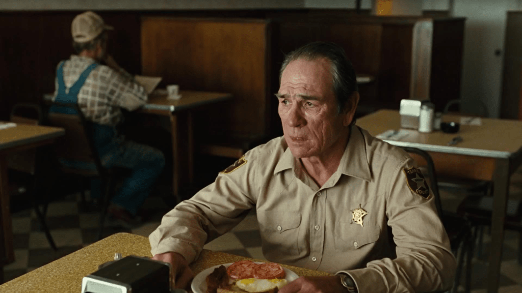 It’s how materials are used (and acquired) that can bring trouble. How much they’re desired. Bartered goods vs. money paying for goods. If one puts more value in materials than in other people. Such as people like Anton, who are incapable of having feelings for others. He has no purpose other than to be an agent of chaos and nihilism. Not just causing destruction, but sowing the seeds for further destruction among the populace. He does not die in the film because he is a force of nature still alive and well today, crushing the moral fiber of the country.