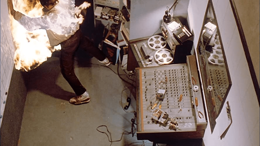 All that aside, the film as-is, the first 10-15 minutes is a nice enough opener, but then the film slows down a bit too much for me until Sam has his first spontaneous combustion moment (it’s handled very well, and is shown very effectively). From there it continues to get interesting, until it finally just goes into loony tunes territory by being a rip-off of Scanners more than something that tackles the spontaneous human combustion (SHC) subject matter (starting with his phone conversation with the psychic; the fact that the film has something like that and takes it seriously astounds me).
