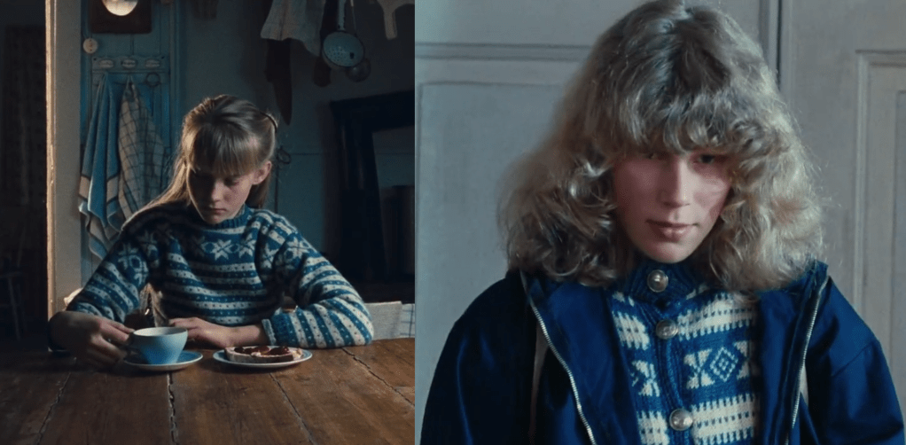 Except for one girl: Siss. Unn takes a liking to her, and it’s mutual. They form a friendship. But one night (the start of the film), that aspect of their friendship becomes threatened. Because as the camera angles indicate, with how Unn looks at Siss, where she looks, how she looks, what she tries… this attraction becomes physical and threatens to go beyond simple friendship. There’s some implications regarding the images of pinup models Unn has in her room to indicate she has some lesbian tendency that is in its early stages, but hasn’t fully matured yet. But she pursues it in the scene where she suggests they both get undressed. And they do, they both fully disrobe and look at each other. For Siss, who is more innocent-minded, she looks back at Unn with a smile. Unn however, even though she instigated it, continually looks down and away, aware of how awkward this is. This is key here. How Siss at one end is of the more innocent mind and happily goes along with this. While Unn is aware (to an extent) that her intentions behind this are less innocent, and is ashamed of doing this, which brings tears to her eyes. It is Unn herself who then suggests they both put their clothes back on. Which they do, but Unn knows she was going along a path that she shouldn’t, and had a sense that this would ruin something good. Because she knew that there is something valuable about the current state of the friendship they share that was threatening to change at that very moment, so she attempted to walk it back before it was too late.