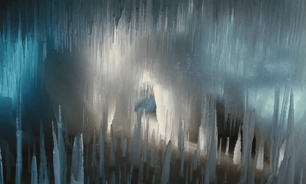 The ice palace itself is a fascinating site. How Unn discovers it, choose to traverse it carefully, only for her descent to turn into a rapid fall. A metaphor for her discovery and exploration for something that is fascinating yet sacred (too sacred for her), only for it to lead to a rapid descent as she is incapable of being careful enough for it to be otherwise. But it doesn’t lead to any immediate harm, just shock and a warning against pursuing this too far; much like her feelings for Siss (who she also finds fascinating and beautiful). The warning is further delivered with how cold the walls are to the touch, interesting at first, but quickly becomes painful, which she shirks away from; yet still she chooses to continue in. She witnesses fascinating sites within the palace, and initially seems awed by it, this this quickly changes to something else. As if this isn’t something amazing to witness anymore. Her shouting “Hey!” initially seems as something for fun, but quickly changes to something more empty. Her initial shout has echoes, the later one does not. Walking through in wonder, then walking through destroying icicles, damaging the beauty of the place (in a minor way). Motivations left unclear and open to interpretation. She is aware of the dangers of this palace, the beauty yet menace of the icicles that dangle from its ceiling and coming up from the floor. Knowing that it’s dangerously cold and what will happen if she continues. Yet a sadness continues to drive her, as if she’s knowingly punishing herself, going through the room of falling water, drenching herself. Touching the walls for a longer period of time, no longer caring how much it hurts. And eventually succumbs to hypothermia. Because she would rather be frozen in her current state than have to deal with moving on with her relationships, dealing with her emotions, getting over what’s holding her back in her past. Dying in a place of beauty, but also in a place of cold nature. Because nature can be as beautiful as it can be harsh; it is to be respected, as all beautiful things must be.